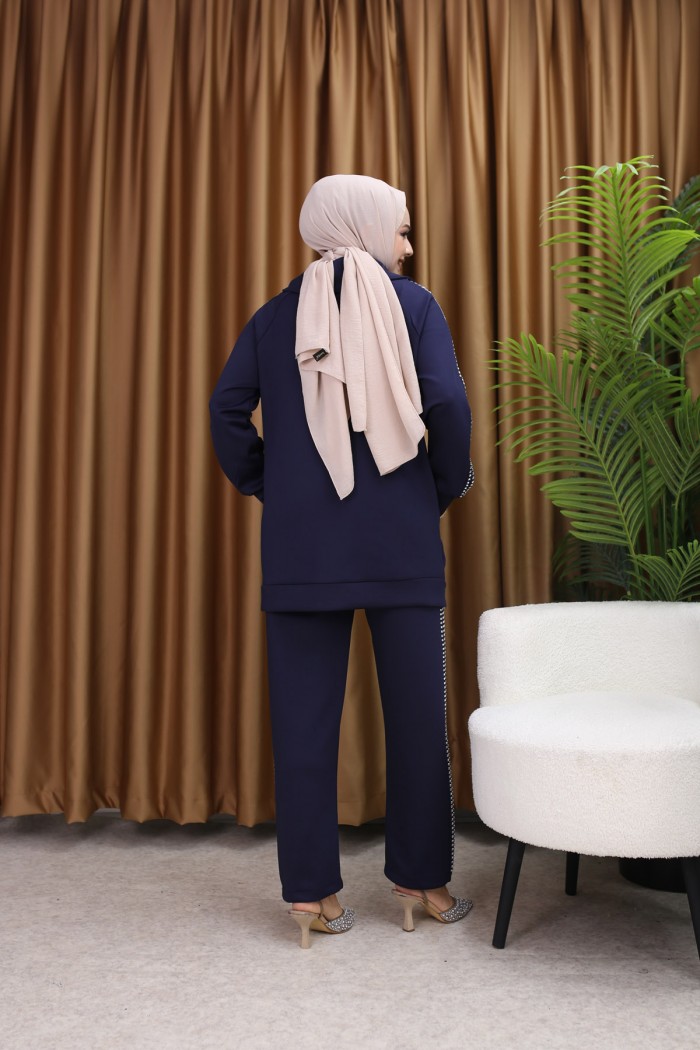 Kübra Model Kol Ve Pantolonun Yanları Taş Dteaylı İkili Takım 38-40-42-44 Tam Kalıptır.