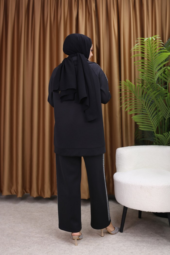 Kübra Model Kol Ve Pantolonun Yanları Taş Dteaylı İkili Takım 38-40-42-44 Tam Kalıptır.